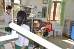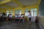 Die Schule hat rund 7’000 Kinder – also mehr als 1,5x Engelberg… Viele Kinder wohnen auch hier und darunter gibt es auch diverse Weisenkinder. Das Besondere an der Schule ist, dass jedes Kind ohne Gebühren hier zum Unterricht kann und auch eine Mahlzeit erhält. Bis jetzt ist dies dank Spendengeldern immer wieder gelungen. Bei der Schule ist dabei der deutsche Förderverein mitverantwortlich, dass die Gelder in die richtigen Wege geleitet werden. Nebst der Schule gibt es dann auch die Zahnarztpraxis, welche von der Westschweizer Association Thannaka gegründet und betrieben wird. Hier arbeitet Andrea. Sie behandelt nebst den Kindern auch die Lehrer, Novizen und Mönche welche im Kloster leben. Sie hätte hier eine Lebensaufgabe – die Hygiene ist teilweise schon erschreckend und macht vor dem Gebiss nicht halt. Viele Kinder haben gar keine Zahnbürste und putzen mit den Fingern ihre Zähne so gut dies möglich ist. Der verlockende Zuckerfruchtsaft vom Kiosk ist dabei auch nicht gerade förderlich und trägt das seinige zu den löchrigen Angelegenheiten bei. Wir entschliessen uns, nicht nur Schadensbehebung sondern auch prophylaktische Massnahmen zu ergreifen. Wie vor zwei Jahren, erklärt Andrea mit Unterstützung von Kaythi den Kindern in den Klassen, wie man die Zähne richtig putzt. Danach gibt es Aufklärung, dass die Süssgetränke sehr schädlich sind für die Zähne. Zum Abschluss können sie eine farbige Zahnbürste aussuchen und die Lehrer erhalten Zahnpasta, damit die Kinder am Mittag die Zähne putzen können. Wir verteilen rund 1000 Zahnbürsten und 100 Tauben Zahnpasta welche wir auf dem Markt gekauft haben. Dies ist unser „Weihnachtsgeschenk“ an die Schule. Uns begegnen Kinder im Schulgelände mit den Zahnbürsten in der Hand – sie wollten nicht bis Mittag warten um sie auszuprobieren. Eine deutsche Lehrerin wollte einem Kind einen Saft kaufen, dieses habe aber dankend abgelehnt und erklärt, das sei nicht gesund. Hoffen wir, dass dies kein Einzelfall ist und die Aufklärung nachhaltig ist. Solche Feedbacks motivieren Andrea und helfen über Enttäuschungen in der Zahnarztpraxis hinweg. In der Praxis führen die Zahnärzte sich ziemlich egoistisch auf und behandeln anstelle der Kinder aus der Schule lieber zahlende Kunden von ausserhalb. Um dies zu verhindern, müsste man wohl eine Vollzeitperson von der Association hier haben.