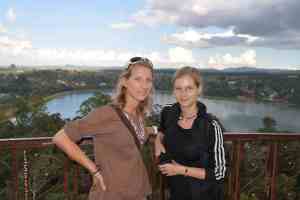 Andrea und Katharina auf dem Aussichtsturm im Botanischen Garten