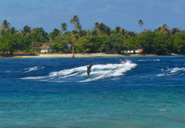 Beim Tiputa Pass in Rangiroa leben rund 20 Delfine