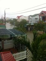Am Morgen nach dem Taifun – überflutete Strasse
