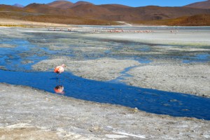 Pelikane – rot gefärbt durch den Krebsverzerr