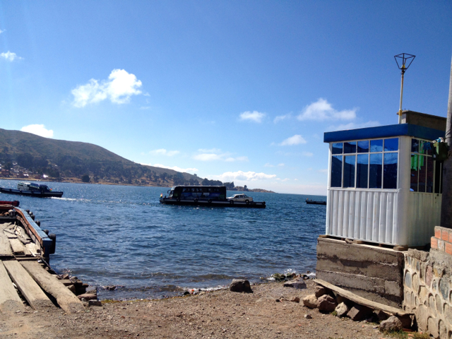 Unser Bus wird über den Titicacasee geschifft